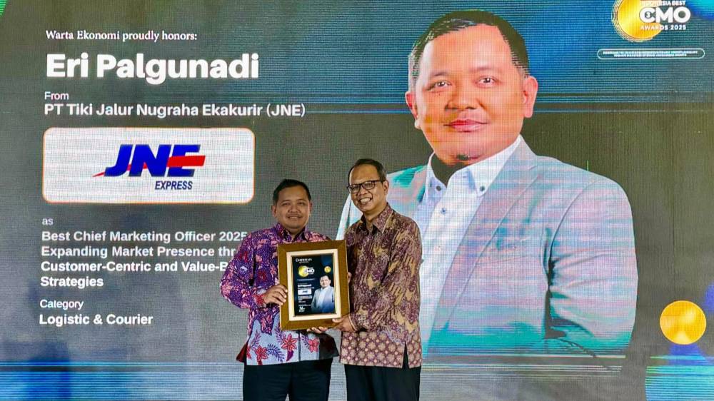 BISNISQUICK.COM – Menjelang perayaan ulang tahun JNE ke-35 pada 26 November 2025 mendatang, perusahaan jasa logistik nasional tersebut kembali menorehkan prestasi. SVP Marketing Group Head JNE, Eri Palgunadi, dinobatkan sebagai Best Chief Marketing Officer (CMO) 2025 untuk kategori Logistics & Courier dari Warta Ekonomi. Penghargaan dengan tema Expanding Market Presence through Customer-Centric and Value-Based Strategies itu diserahkan langsung oleh CEO & Chief Editor Warta Ekonomi Group, Muhamad Ihsan, di The Sultan Hotel, Jakarta, Jumat (31/10).