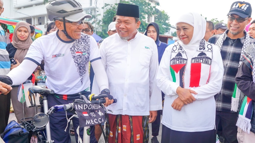 BISNISQUICK.COM – Gubernur Jawa Timur Khofifah Indar Parawansa memberangkatkan ratusan pesepeda yang tergabung dalam Gowes Bareng (Gobar) 1.000 Kilometer _Ride For Palestine 2_ di depan Kantor Gubernur Jawa Timur, Jalan Pahlawan 110 Surabaya, Minggu lalu.