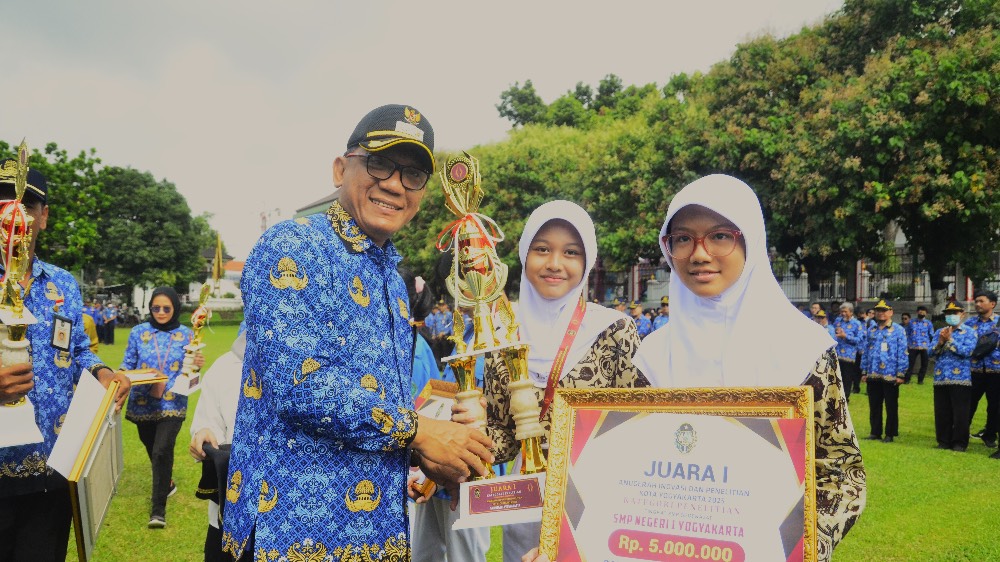 Dua siswi SMP Negeri 1 Yogyakarta, Azkadinia Seira Putri Arsyajati dan Aisyah Nur Aini Larasati, meraih Juara I kategori penelitian dalam Anugerah Inovasi dan Penelitian Kota Yogyakarta berkat inovasi pangan berbasis limbah ampas tahu.