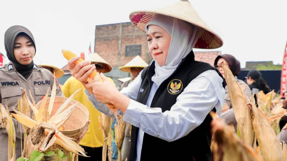 “Alhamdulillah, oleh Bapak Presiden Prabowo Indonesia telah dinyatakan swasembada pangan. Kita sudah swasembada beras, hari ini kita panen jagung, dan target swasembada jagung Insya Allah bisa tercapai pada tahun 2026,” ujar Gubernur Khofifah.
