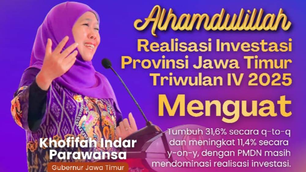 “Angka ini merefleksikan tingginya kepercayaan investor terhadap stabilitas dan potensi ekonomi Jawa Timur, di tengah dinamika dan tantangan ekonomi global,” ungkap Khofifah, Senen (19/1).